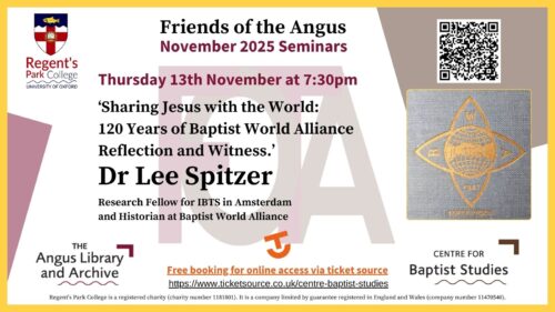 The Angus Library and Archive is the leading collection of Baptist history and heritage worldwide. The ‘Opening the Angus Seminars’ provide an introduction to this rich resource, and some previous seminars are available to view online.