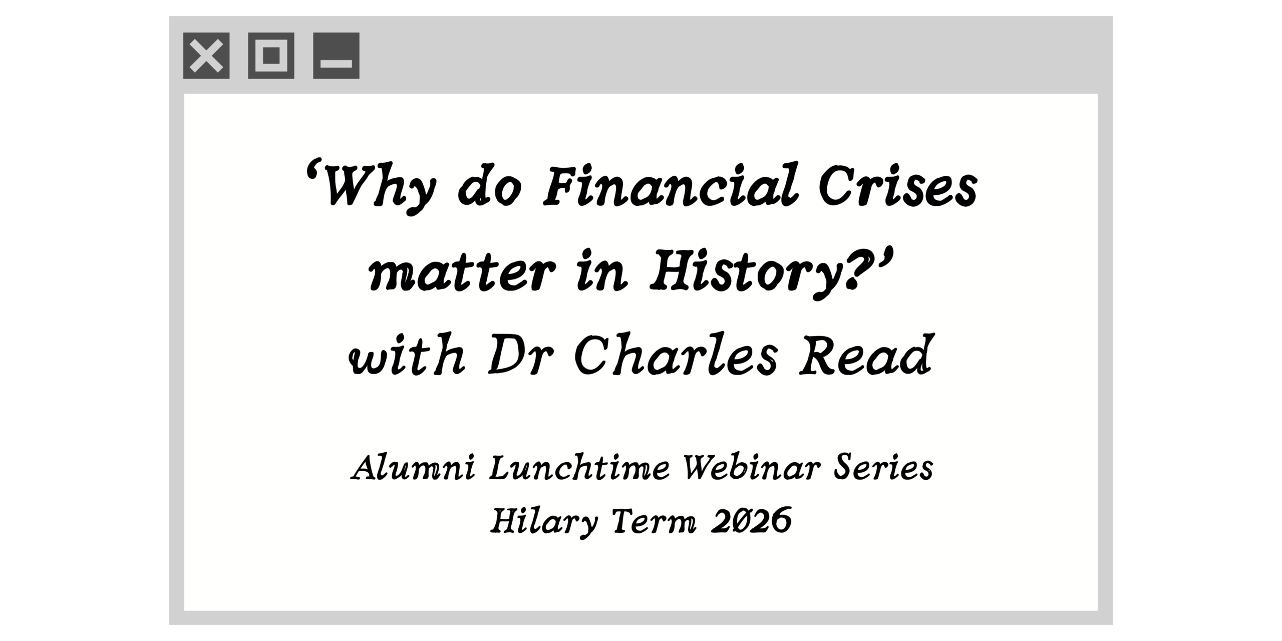 Why Do Financial Crises Matter? Alumni Lunchtime Webinar with Dr Charles Read
