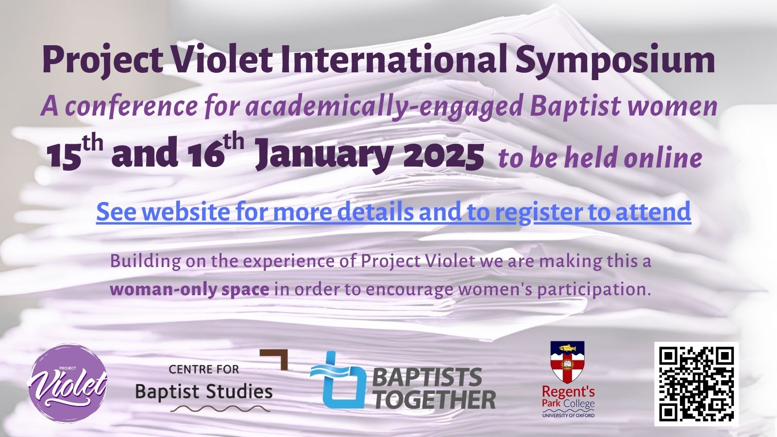 The Centre for Baptist Studies in conjunction with Baptists Together are organising this online Symposium, to which we are inviting academically-engaged Baptist women from around the world to discuss the findings of Project Violet and the actions arising from this extensive investigation into women’s experiences of ministry.
