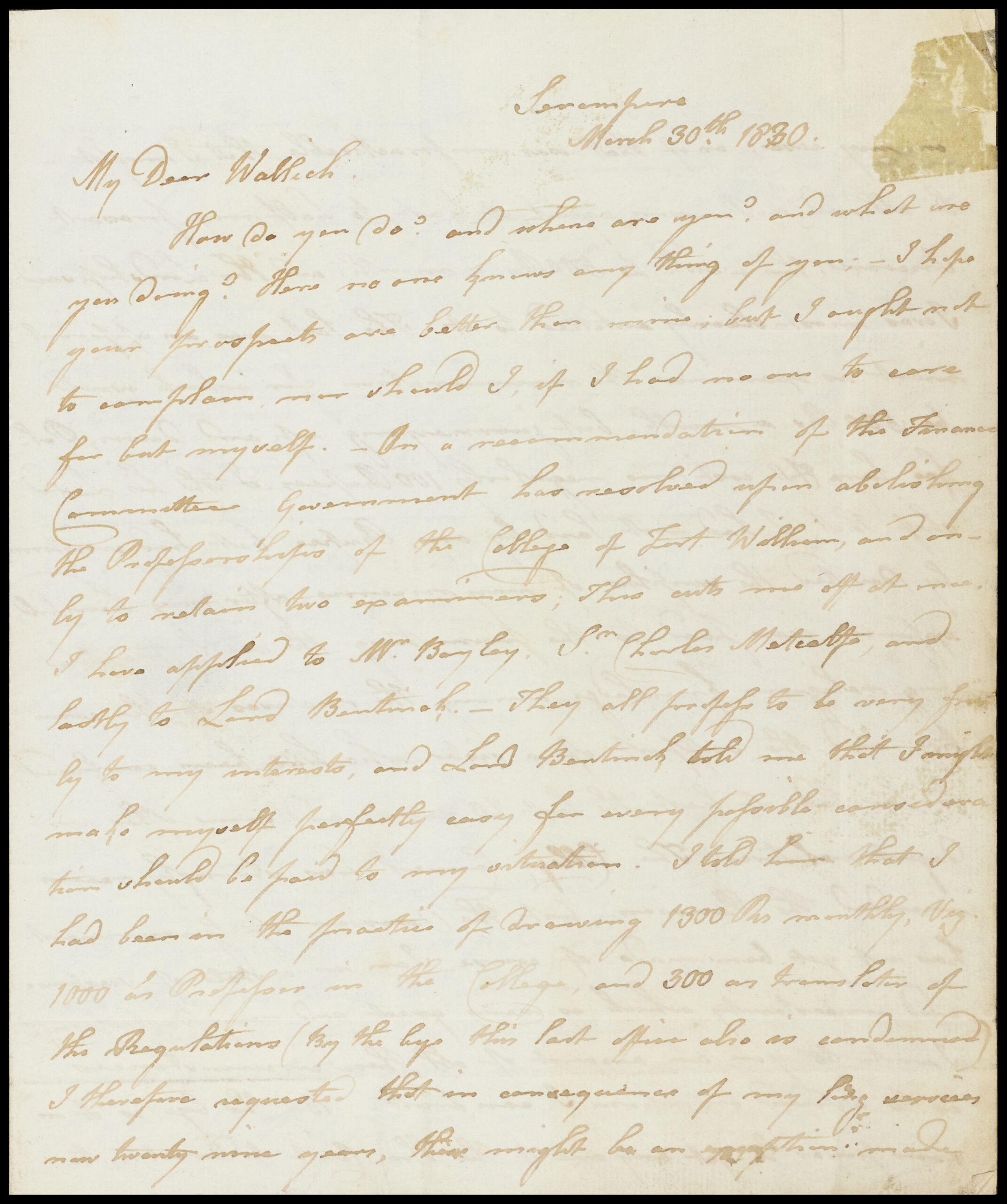 ‘The Serampore Royal Charter of 1827, bestowed by Frederick VI of Denmark, empowered the College to award its own degrees without restriction of subject. Indeed it specified that such degrees should be conferred only on those students ‘that testify their proficiency in Science’. This clause reflected William Carey’s personal conviction of the unique apologetic value of scientific knowledge (Stanley, BQ 2020, 19)