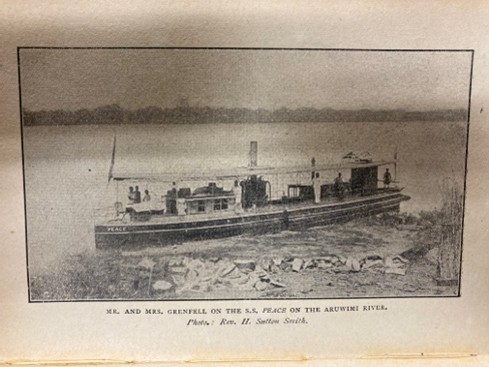 ‘While waiting for the arrival of engineers who were to reconstruct the steamer, Grenfell embarked on a preliminary voyage up the Congo “in a small steel boat. On this journey his talent for exploration revealed itself. He spent the time taking soundings and bearings, charting and mapping the river, visiting villages on its banks and noting sites for possible stations . . .